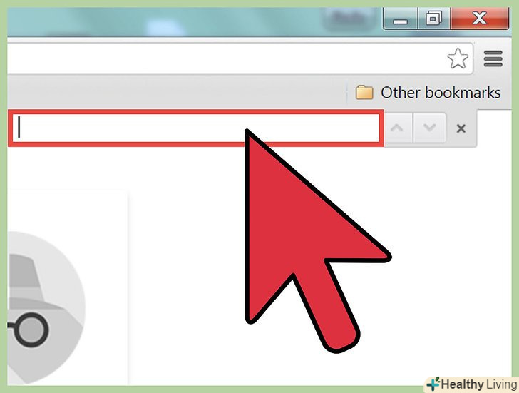 Знайдіть і клікніть по опції "знайти". [2] як тільки ви оберете пункт "Знайти", випадаюче меню зникне, а замість нього під адресним рядком з'явиться невелике текстове поле. Всередині повинна бути рядок пошуку, стрілки вгору і вниз, а також"X."