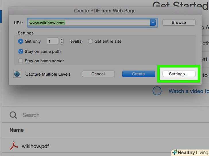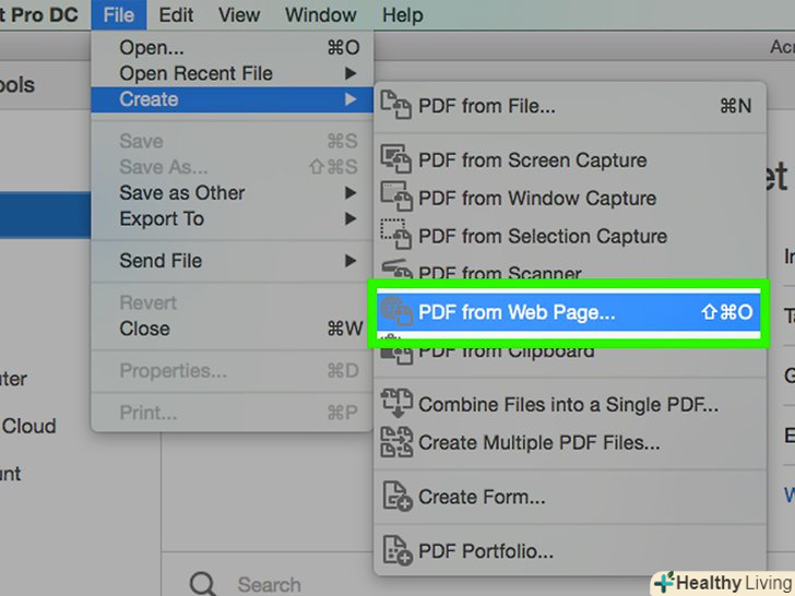 Відкрийте меню «Файл «і виберіть» Створити PDF « → »Веб-сторінка". для цього методу вам знадобиться платна версія Adobe Acrobat, але зате вона дозволяє зберегти весь сайт цілком, включаючи всі сторінки на сервері у вихідному форматі і з робочими посиланнями.