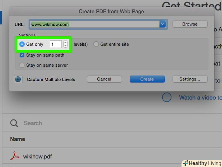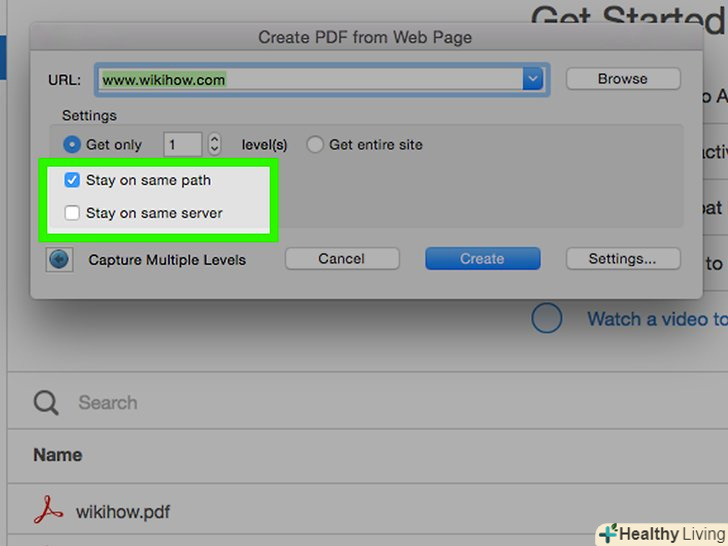 Позначте клітинки, щоб залишитися на сайті. при роботі з декількома рівнями є ймовірність, що посилання виведуть вас за межі сайту. Забороніть Acrobat захоплювати ці сторінки, вибравши "Використовувати цей шлях доступу«, щоб перетворювати сторінку за вказаною URL-адресою, або виберіть» Використовувати цей сервер", щоб перетворювати сторінки, що зберігаються на одному сервері.