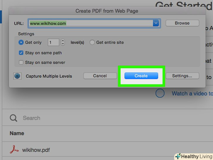 Натисніть на кнопку.Створити, щоб створити файл PDF. залежно від того, скільки рівнів ви захоплюєте, і наскільки величезний сайт, процес конвертації може зайняти від декількох хвилин до порядної кількості часу. [3]