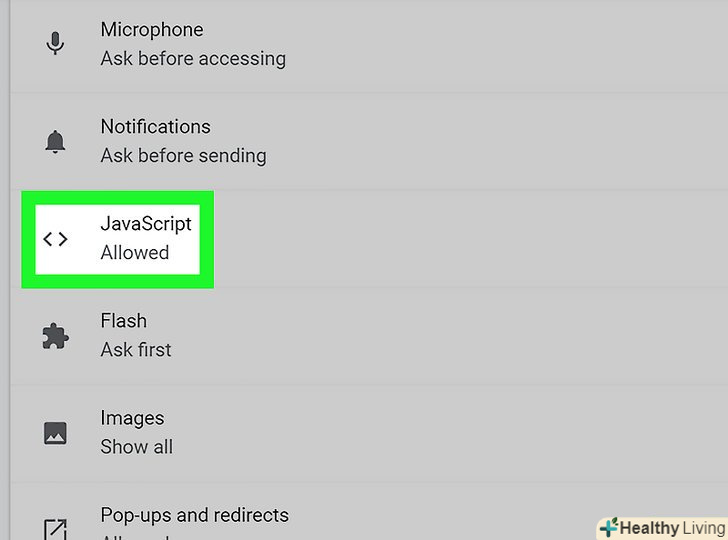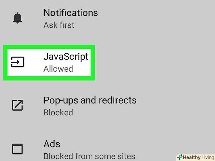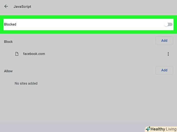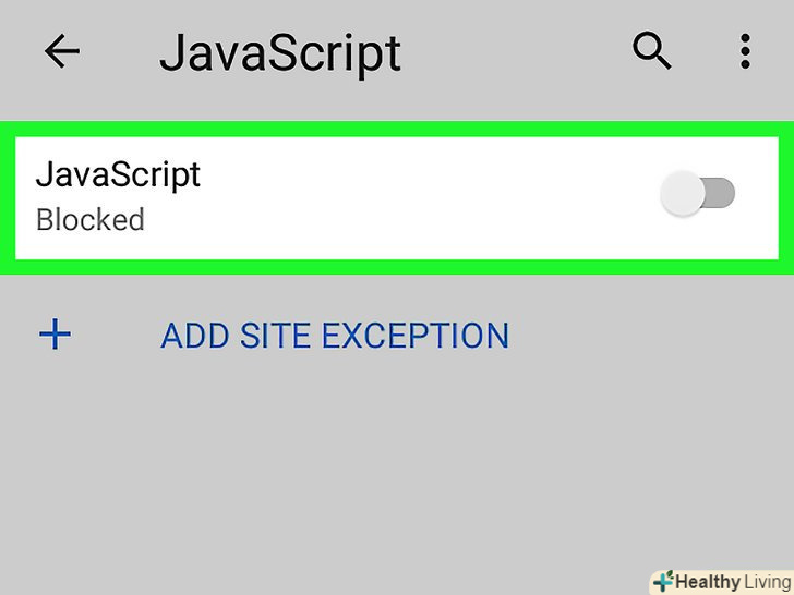 Торкніться синього повзунка у " JavaScript». Перемикач стане сірим