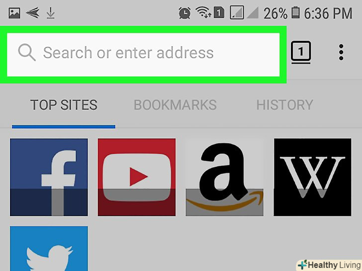 Торкніться адресного рядка. вона знаходиться у верхній частині екрана. Відкриється екранна клавіатура Android-пристрою.- Якщо в адресному рядку є текст, видаліть його.