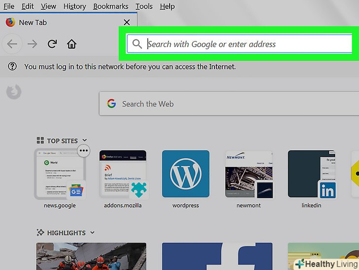 Натисніть на адресний рядок. це довге текстове поле знаходиться у верхній частині вікна Firefox.- Якщо в адресному рядку є текст, видаліть його.