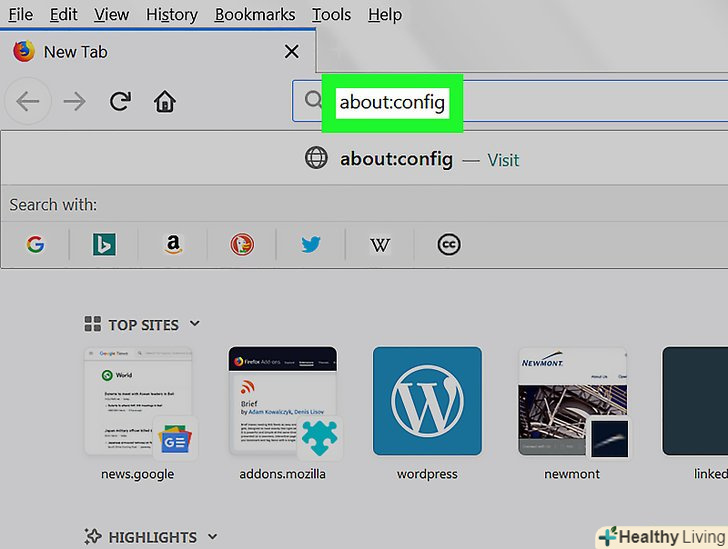 Перейдіть на сторінку конфігурації. введіть about:config і натисніть ↵ Enter .
