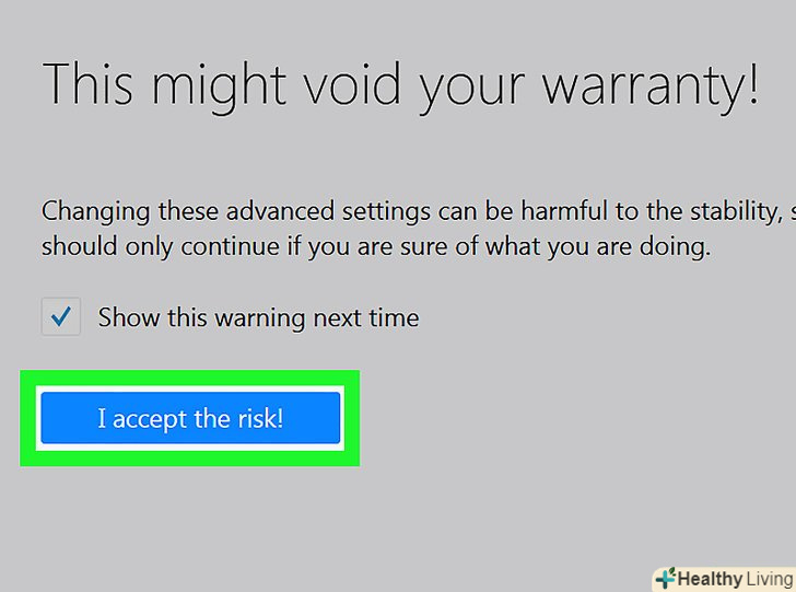 НатиснітьЯ приймаю на себе ризик! , коли з'явиться запит. ця синя кнопка знаходиться в центрі сторінки.