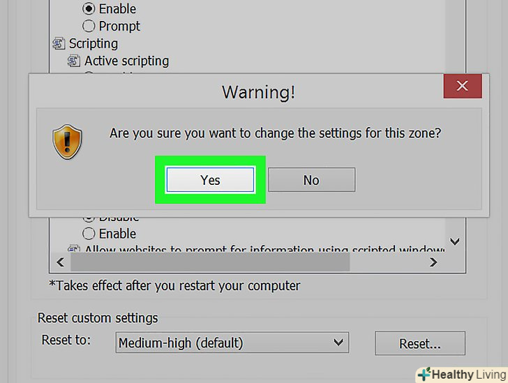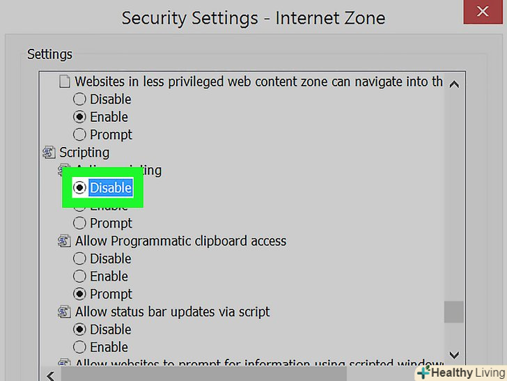 Встановіть прапорець біля «відключити» в розділі «активні сценарії». це означає, що ви хочете відключити JavaScript в Internet Explorer.