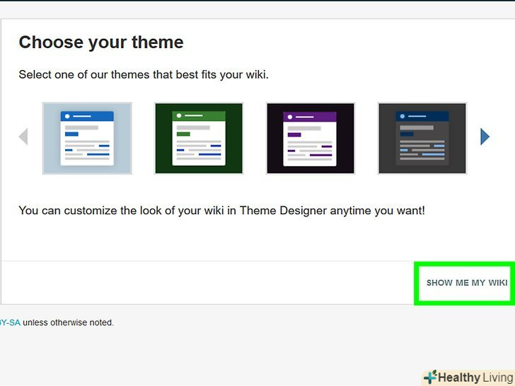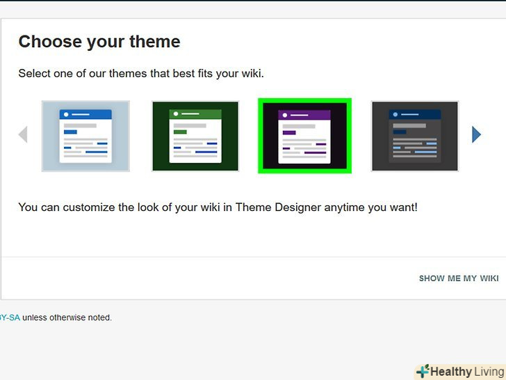 Виберіть тему. поки Fandom створює ваш wiki-сайт, клікніть по темі, яку ви хотіли б використовувати.