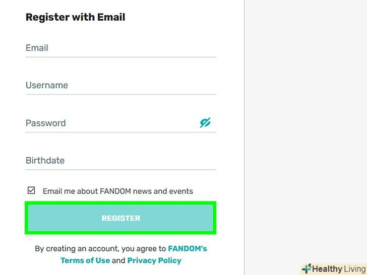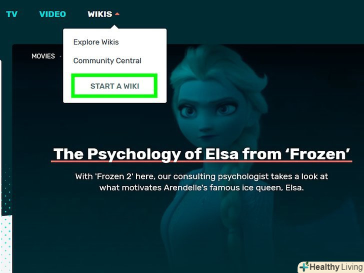 Відкрийте веб-сайт FANDOM powered by Wikia. перейдіть за посиланням http://fandom.com/ в браузері. На цьому сайті ви зможете безкоштовно створювати wiki-сайти на движку Fandom.