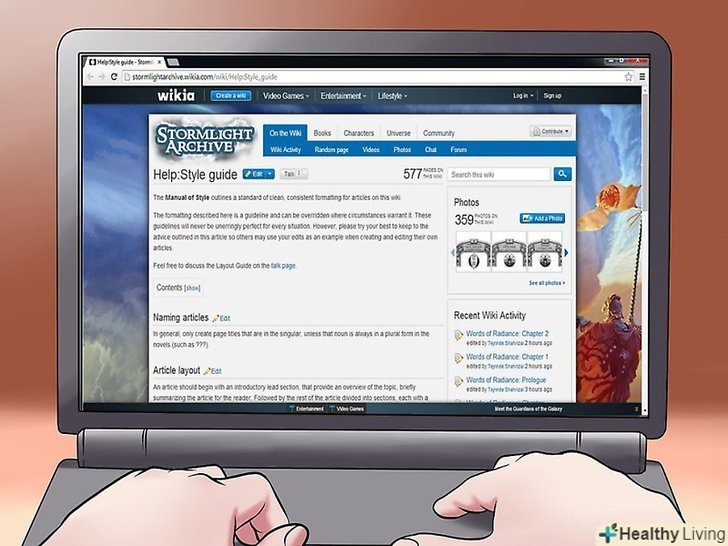 Напишіть Керівництво по стилю статей для вашого wiki-сайту. Керівництво по стилю-це основні правила написання статей на вашому wiki. Керівництво допоможе іншим авторам дізнатися, як повинна бути представлена інформація на сайті для користувачів. Зовсім не обов'язково придумувати суворі правила, навпаки-буде краще озброїтися гнучкими правилами, адже люди не зможуть розвивати ваш сайт, якщо будуть пов'язані по руках і ногах драконівськими правилами.- Можливо, варто описати стандартні методи перелінковкі статей і створення якісного контенту.