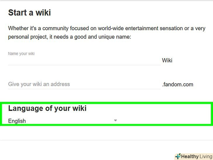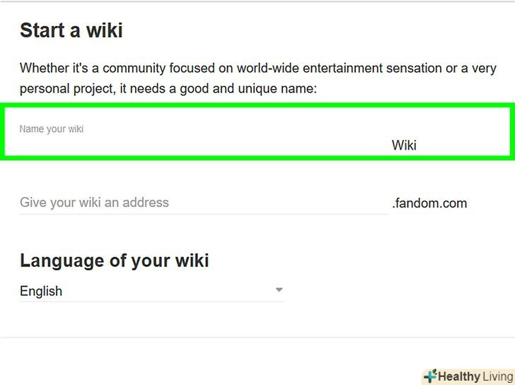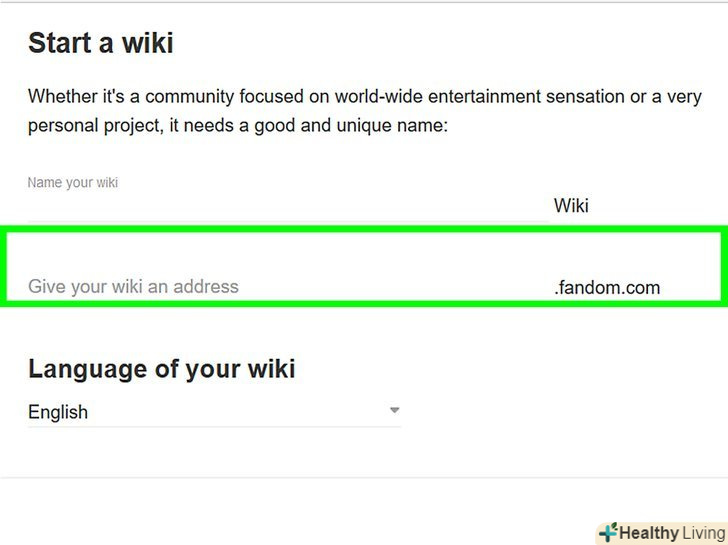 Придумайте адресу. як правило, адреса буде генеруватися автоматично на основі введеного вами в поле "Give your wiki an address" (придумайте адресу для wiki-проекту) назви, проте ви можете в будь-який момент змінити його.- Адреса повинна бути унікальною; якщо вибране вами ім'я вже зайнято, ви не зможете його зберегти.
