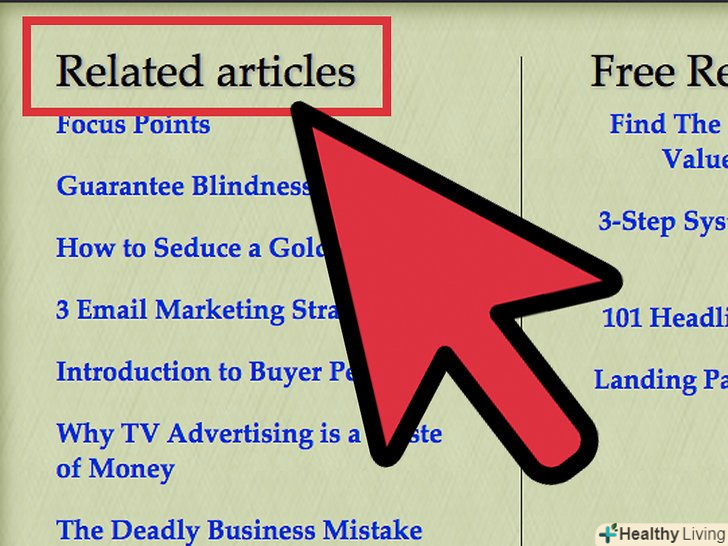 Коментуйте пов'язаний вміст. швидкий спосіб поширити посилання-це коментувати інші блоги та статті з пов'язаним вмістом. Є кілька точок зору на те, як це робити. Одні пропонують розміщувати контекстні посилання на ваш сайт у вашій відповіді, інші радять розміщувати посилання в підписі або профілі.- Розміщуйте посилання в природних місцях. Посилання, оточені хоч якимось контекстом, з більшою ймовірністю будуть вважатися "хорошими". [4]