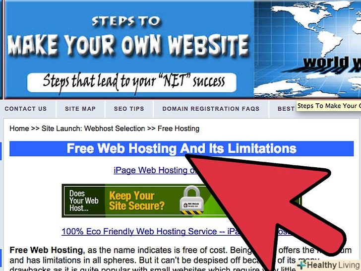 Пам'ятайте, що безкоштовний хостинг має обмеження щодо послуг, що надаються. сайти, розташовані на безкоштовних хостингах, містять рекламні оголошення, які не можна видалити, при цьому ви не зможете розміщувати ваші рекламні оголошення. [4]- Безкоштовні хостинги пропонують меншу пропускну здатність (у порівнянні з платними хостингами). На вирішення проблем з безкоштовним хостингом ви витратите більше часу і сил, ніж грошей на оплату послуг платного хостингу.
