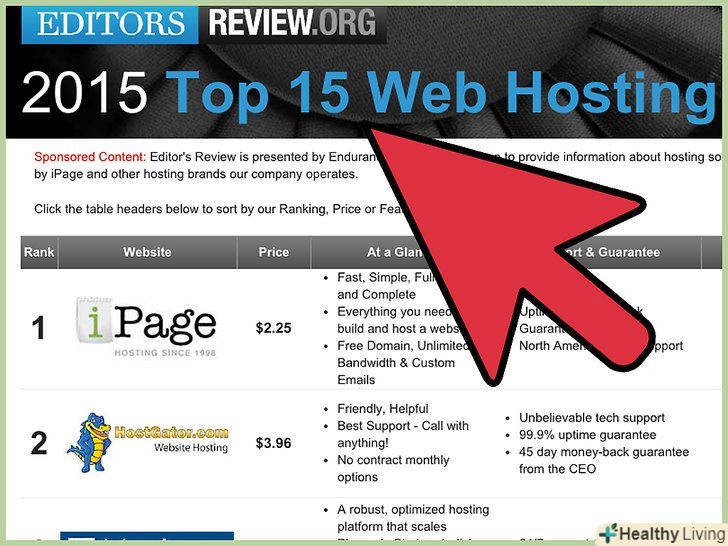 Почитайте відгуки про роботу веб-хостингу. це можна зробити на безлічі сайтів. Читайте останні відгуки, щоб дізнатися про проблеми або досягнення в обслуговуванні клієнтів.- Тут будьте обережні – багато сайтів з коментарями про роботу веб-хостингів належать цим хостингам. Тому завжди читайте текст, набраний дрібним шрифтом, або поцікавтеся думкою людини, яка має досвід роботи з різними хостингами.