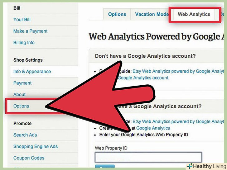 Натисніть 'Налаштування' ( 'Options'), а потім виберіть вкладку 'Веб-аналітика' ('Web Analytics'. )