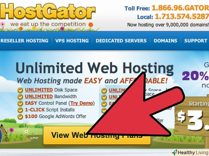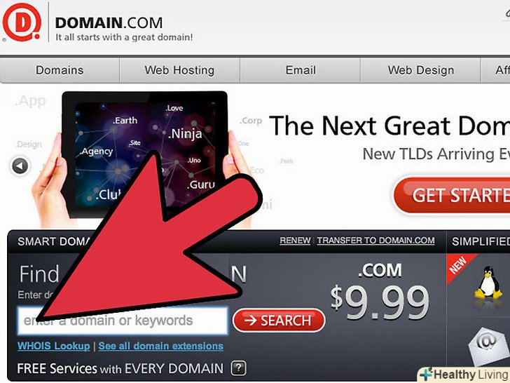 Зареєструйте доменне ім'я. якщо ви обмежені в засобах, є варіанти покупки дешевого доменного імені . Виберіть доменне ім'я, яке легко запам'ятати і проговорити. Якщо ви використовуєте доменне ім'я, що закінчується на". com", підвищений трафік вам забезпечений, але більшість простих Імен вже зайняті, тому проявіть фантазію.- Зверніть увагу на Network Solutions, GoDaddy або Register.com для пошуку і вибору ідеального доменного імені для вашого сайту. Wordpress також пропонує можливість використання їх домену третього рівня, наприклад, mywebsite.wordpress.com. але якщо ім'я, яке ви вибрали, також доступне як. com, ви побачите відповідне повідомлення при вході в систему.