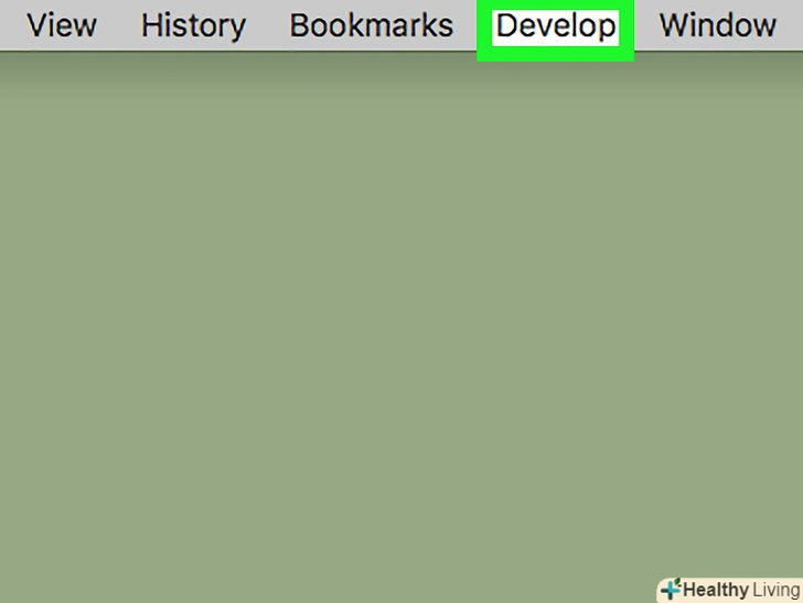 Клацніть поРозробка . це меню знаходиться зліва від меню "Вікно" в рядку меню.