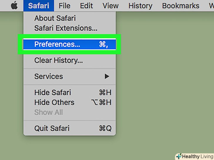 Клацніть поSafari . ця опція знаходиться у верхній лівій частині панелі меню. Відкриється випадаюче меню.