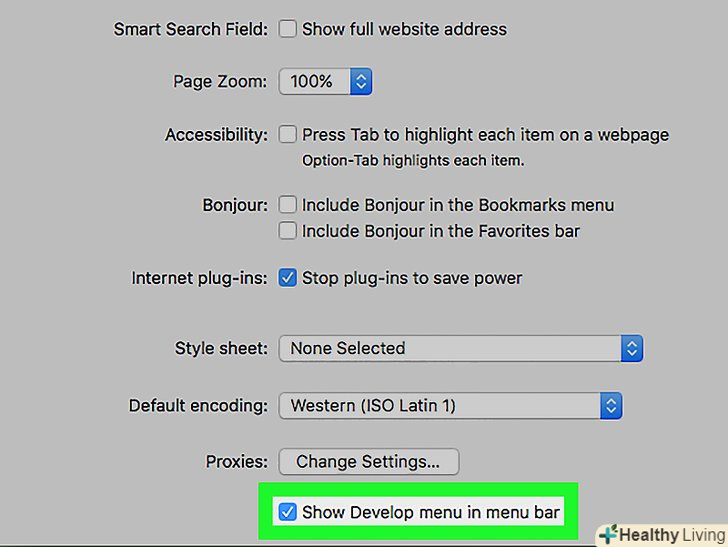 Поставте прапорець біля «показувати меню в рядку меню". ця опція знаходиться в нижній частині вікна "Налаштування". У рядку меню відобразиться меню»Розробка".