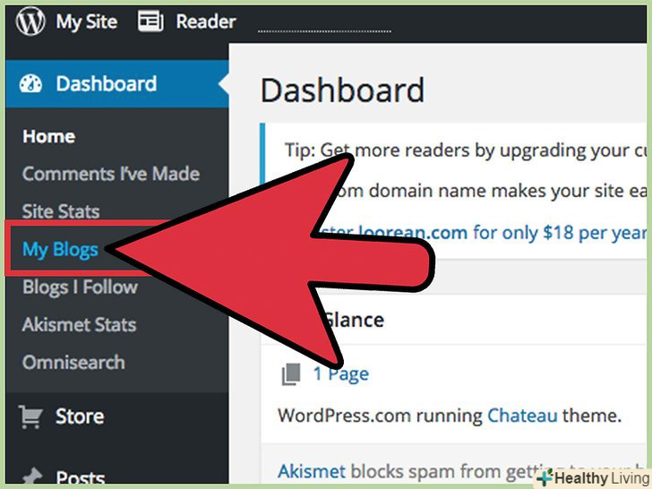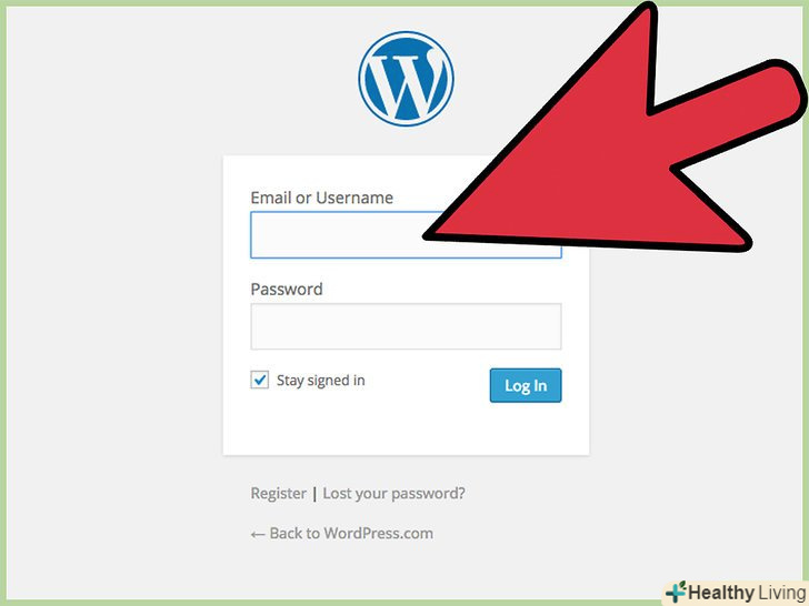 Відкрийте іншу вкладку у вашому вікні інтернет-браузера. Увійдіть у свій обліковий запис блогу WordPress.- Якщо ви не маєте WordPress блогу, перейдіть на головну сторінку WordPress і натисніть на помаранчеву кнопку з написом "Get Started Here" (почати тут). Вас проведуть через процес реєстрації.