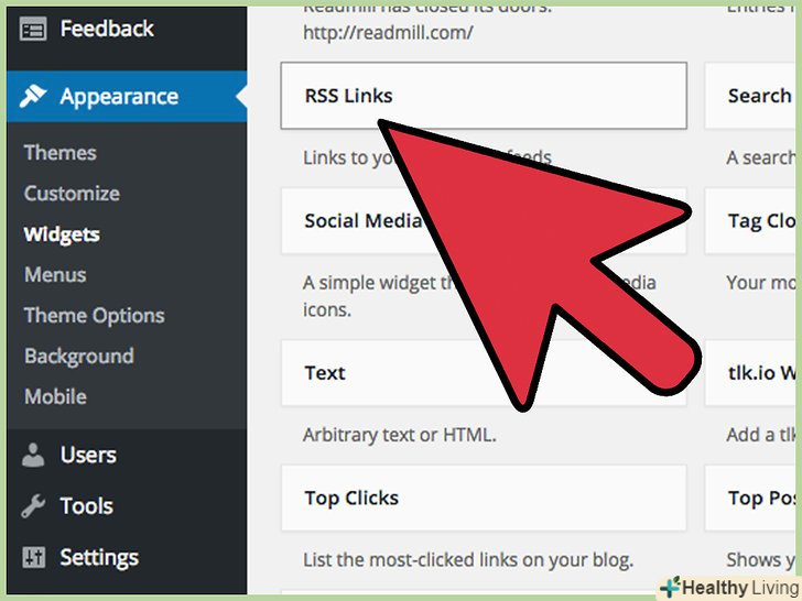 Знайдіть віджет" RSS Links " WordPress у списку віджетів.