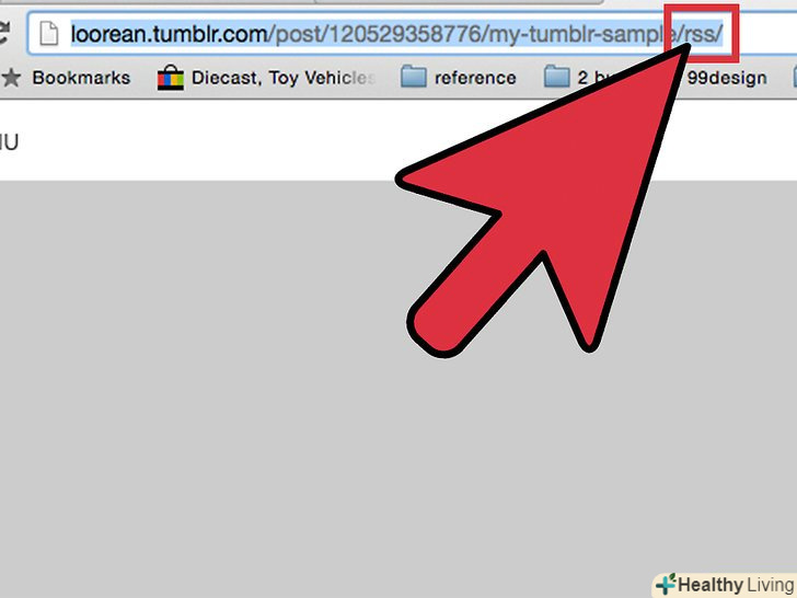 Додайте "/rss/" в кінці скопійованої URL-адреси. Це ваша RSS-адреса. Наприклад, якщо ваш блог Tumblr називався " Computer tutorials "(Комп'ютерні навчальні програми), то ваша RSS-адреса може бути "http://computertutorialsexample.tumblr.com/rss/"