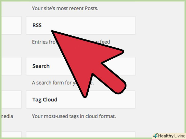 Знайдіть WordPress віджет "RSS" в списку у верхній частині або в списку неактивних віджетів поблизу нижньої частини вікна.