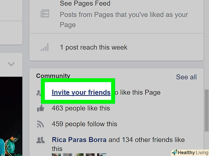 Клікніть на посилання"запросити друзів". після публікації (або, при необхідності, відновлення) фан-сторінки важливо поширити її серед друзів якомога ширше. Якщо вони приймуть ваше запрошення і поставлять сторінці "подобається", то стануть ваші першими "шанувальниками". Спробуйте розіслати запрошення всім знайомим: друзям в Фейсбуці, колегам, контактам Електронної Пошти, читачам вашого блогу і так далі.- Напишіть гранично ясно, що Ви були б вдячні, якщо вони поставлять вашій сторінці "подобається". Аж ніяк не всі знають, що робити після того, як вони клікнуть на якусь надіслану посилання!