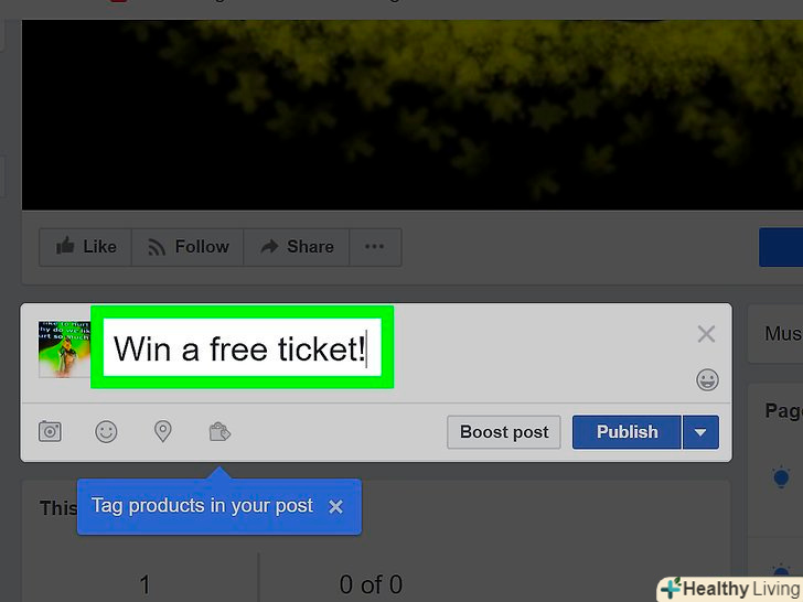 - Використовуйте функцію "@відповісти" (на зразок функції "@" в Твіттері), щоб відзначити когось на вашій сторінці в Фейсбуці. На сторінці зазначеної компанії або людини буде з'являтися відмітка. Знову ж таки, важливо не перестаратися, інакше можна нажити серйозні проблеми за розсилку спаму. Якщо Ви просуваєте бізнес, не дивуйтеся, якщо конкурент відзначатиме вас на своїй сторінці, це все частина гри!