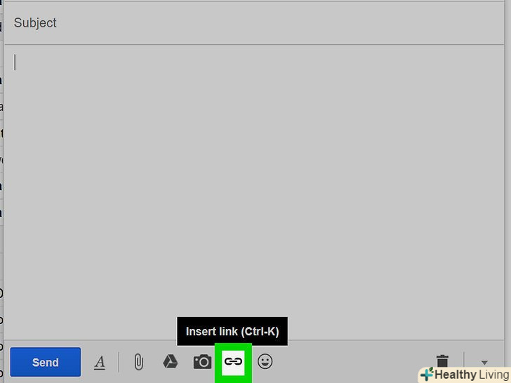 Клацніть по полю, в якому вводиться текст листа. це текстове поле розташоване під рядком «Тема». Тепер можна створити гіперпосилання.