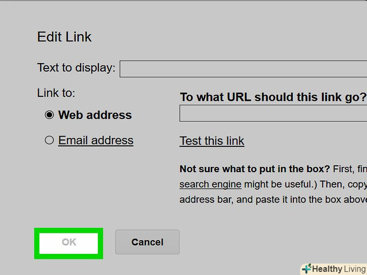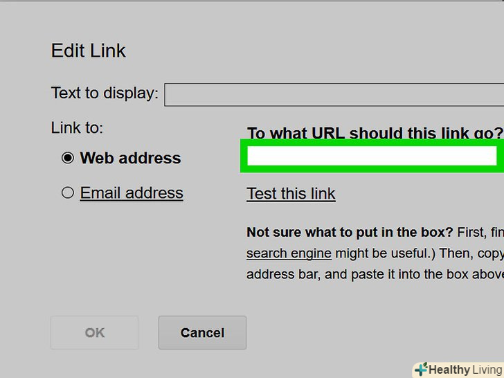 Вставте адресу сторінки. клацніть по текстовому полю» посилання " або "гіперпосилання" , а потім натисніть Ctrl + V (у Windows) або ⌘ Command + V (в Mac OS X).