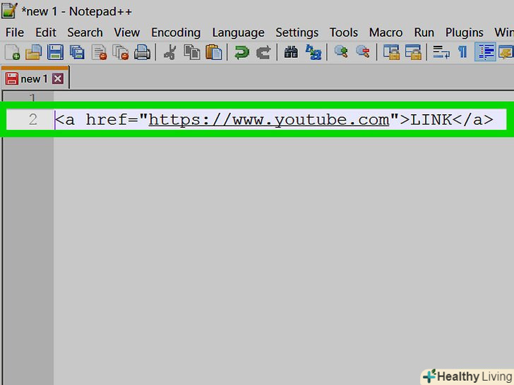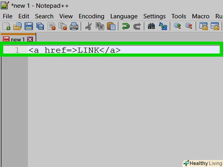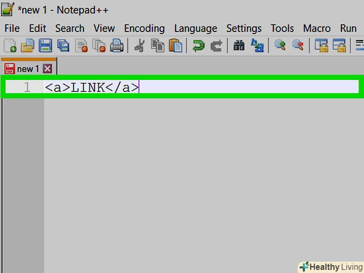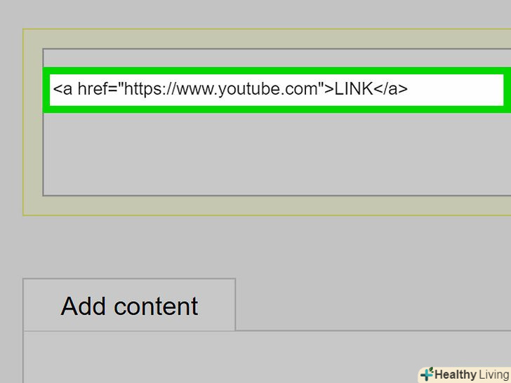 Укладіть текст посилання в теги. гіперпосилання створюються за допомогою відкриваючого тегу " lt; agt;", тексту посилання (наприклад, «посилання») і закриваючого тега (lt;/agt;).- Наприклад, на даному етапі посилання буде виглядати так: