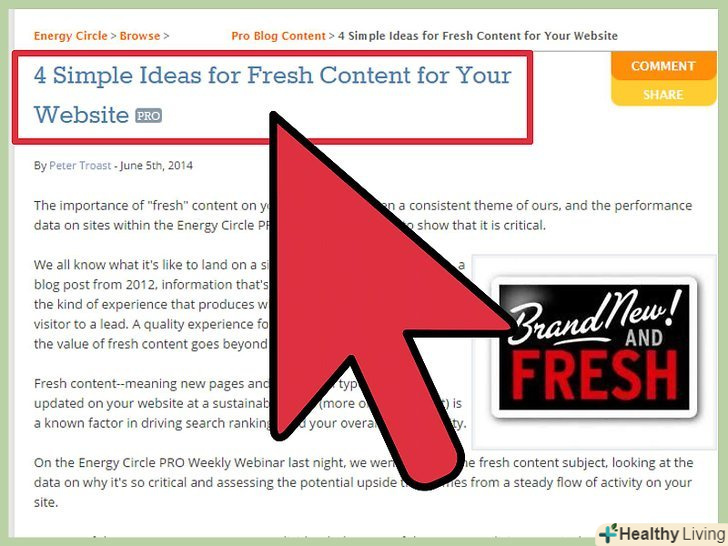 Публікуйте новий контент 2-4 рази на тиждень. не забувайте регулярно оновлювати сайт, додаючи нові цікаві записи, щоб користувачі були постійно залучені. Незабаром вони будуть ділитися публікаціями з Вашого сайту з іншими користувачами, забезпечуючи вам більше переглядів," лайків"," репостів " і так далі. Адже ви напевно хочете зробити свій сайт надійним джерелом інформації - тим самим ресурсом, до якого люди звертаються в першу чергу, коли включають комп'ютер, і не важливо, яка тематика вашого сайту.
