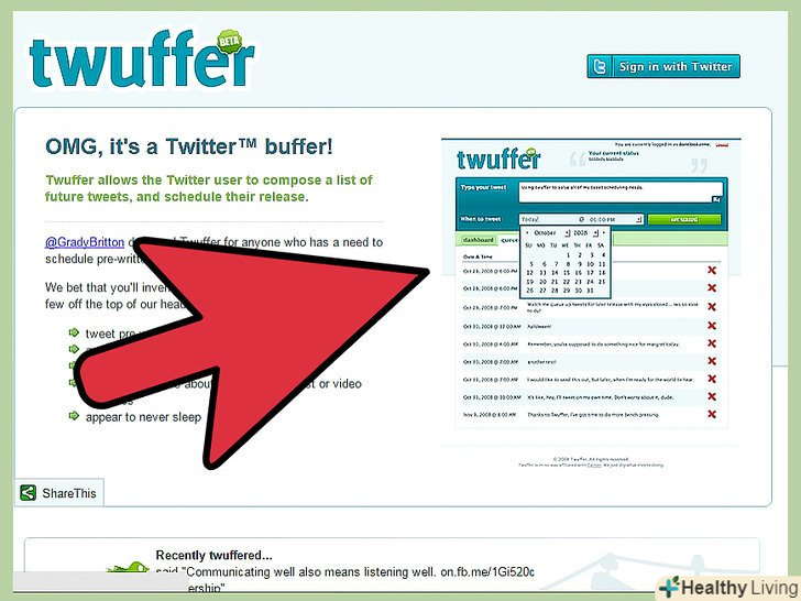 Плануйте твіти.у міру зростання вашої аудиторії ви виявите, що читачі заходять на ваш блог з різних часових поясів. Ваш твіт про блог може запросто загубитися, якщо людина перевірить свій Twitter через 8 годин після його публікації. Користуйтеся інструментами управління соц. мережами (наприклад, HootSuite) щоб планувати публікацію твітів.- Намагайтеся публікувати твіти, коли ваші читачі найбільш активні. Додайте записи вранці, а потім підкріплюйте їх парою твітів ввечері. Так ви зможете придбати нових користувачів, які просто зайшли перевірити стрічку.