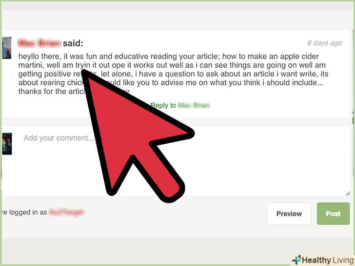 Спілкуйтеся з читачами в коментарях. Коментарі-відмінний спосіб підтримувати зв'язок з вашими читачами. Відповідайте на тлумачні коментарі до ваших статей і використовуйте поле для коментарів, щоб ставити питання читачам. Виділивши всього пару хвилин в день на те, щоб відповісти на найбільш цікаві коментарі, Ви створите диво в співтоваристві ваших відвідувачів.
