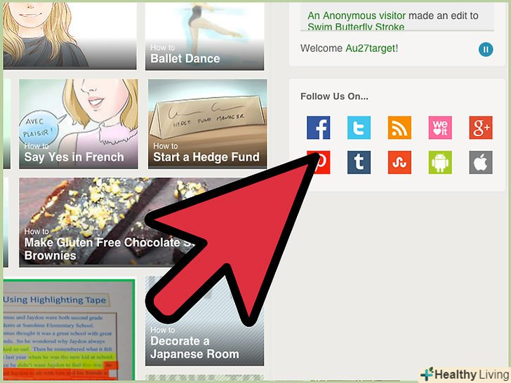 Розміщуйте статті за допомогою Pinterest. Pinterest — орієнтована на зображення соцмережа. Вона зародилася в якості сервісу, за допомогою якого користувачі ділилися рецептами і схемами для рукоділля, але вже давно переросла в щось більше. Якщо збираєтеся розміщувати статті за допомогою Pinterest, переконайтеся що статті супроводжуються якісними, чіткими ілюстраціями або фото.
