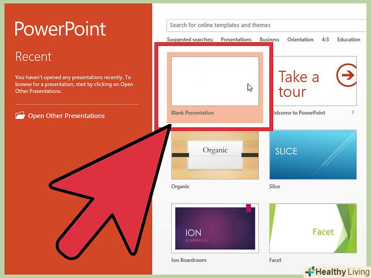 Створіть новий чистий документ PowerPoint.- Встановіть збільшення в 100%.