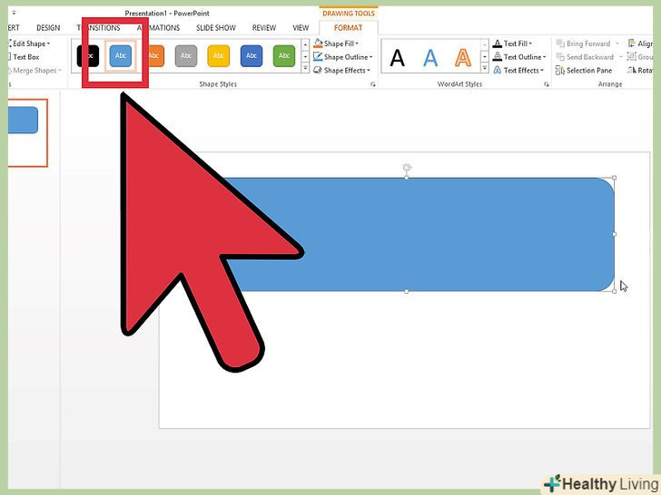 - Намалюйте прямокутник бажаного розміру і заповніть його потрібним кольором. Можна використовувати чистий колір або з меню «заповнити кольором» вибратиFill Effects (Ефект Заповнення). Можна натиснути на кнопку Quick Styles (швидкі стилі) і вибрати стиль.