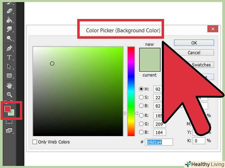 Встановіть колір фону. заповніть шар заднього плану кольором фону, який підходить до дизайну вашого сайту .- Клацніть на колір переднього плану, щоб відкрити палітру кольорів і вибрати заповнює колір.