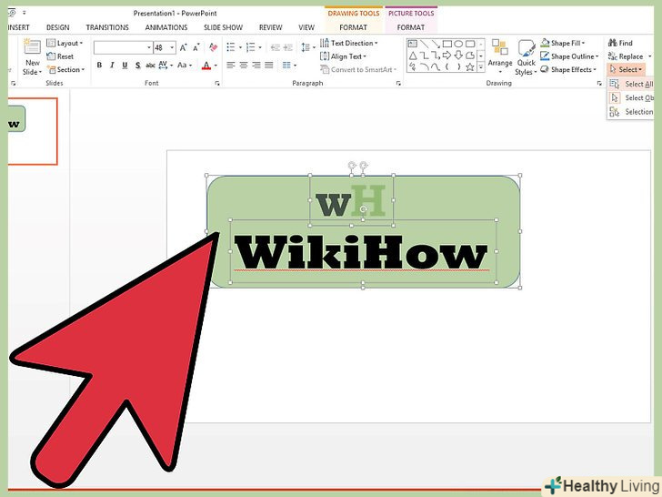 Виберіть банер. з меню Edit (редагувати) виберіть Select All (вибирати все) або натисніть CTRL-A (ПК) або Command-a (Mac). Важливо переконатися, що ваш банер точно такий, як ви хочете, і що на слайді немає нічого зайвого!- Клацніть правою кнопкою миші на будь-якому нетекстовому елементі вашого банера і виберіть,Save as Picture (Зберегти як зображення).