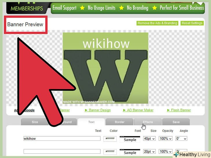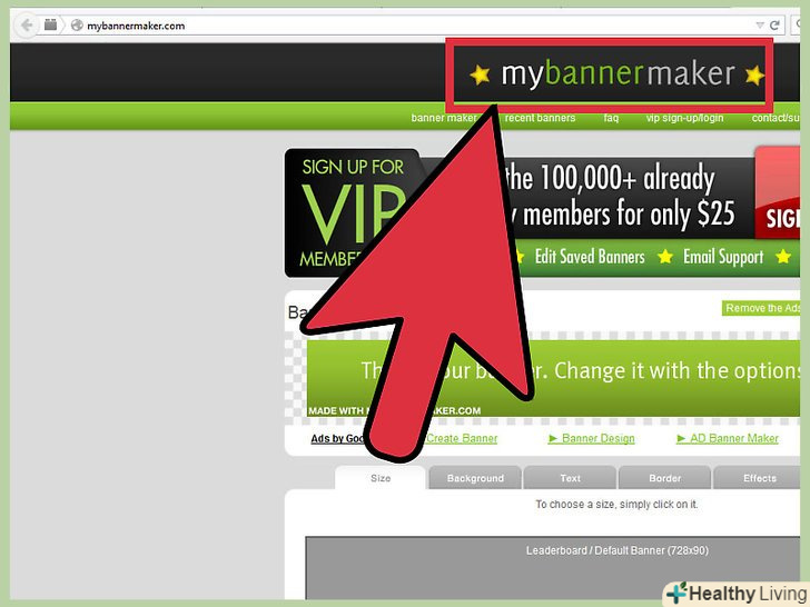 Відвідайте один з наступних веб-сайтів: BannersABC.com, Addesigner.com, mybannermaker.com і т.д. (пошукайте інші сайти в Google). Є багато проектувальників банерів онлайн. Витратьте кілька хвилин, порівнюючи їх особливості, і виберіть той, який підходить вам найкраще.