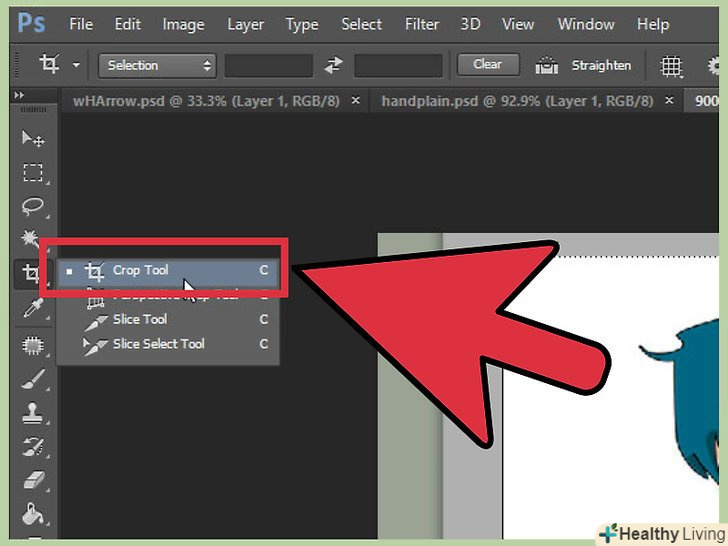 Обріжте ваш банер. використовуйте інструмент Select (вибрати) і виберіть банер. Переконайтеся, що це потрібний розмір. Потім клікніть на Crop (обрізати).
