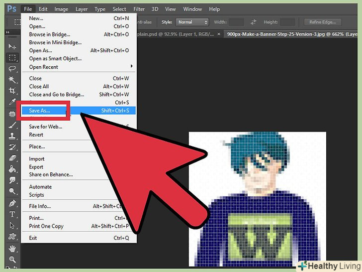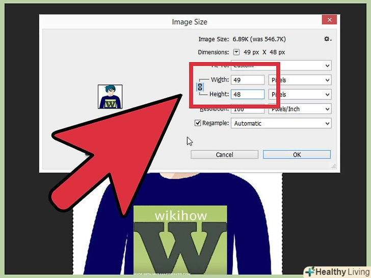 Змініть розміри вашої картинки. Натисніть на кнопку Resize (Змінити розмір), потім виберіть Pixels (пікселі). Змініть висоту відповідно висоті вашого банера.- Пересуньте картинку в потрібне місце.