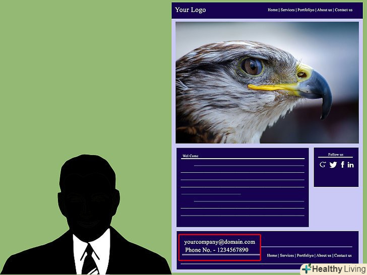 Переконайтеся, що вся важлива інформація добре помітна. відвідувачі сайту повинні з першого погляду зрозуміти, що ви за Компанія. У них повинна бути можливість прямо з головної сторінки відправити електронний лист або знайти на ній телефонний номер. Додайте інформацію про компанію, що супроводжує сайт.