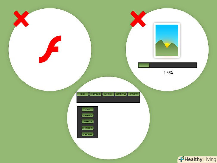Розробіть сайт так, щоб він швидко завантажувався і мав просту навігацію. не використовуйте занадто велику кількість Flash-анімації і великі картинки, інакше сайт буде дуже довго завантажуватися. Побудуйте навігацію таким чином, щоб вона не сильно відрізнялася від загальноприйнятої і була інтуїтивно зрозуміла користувачам. Переконайтеся, що передбачена можливість для розвитку сайту, тобто має бути просто додавати нові сторінки. Дотримуйтеся однакового стилю і навігації на всіх сторінках.