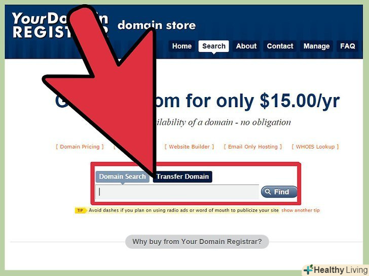 Перевірте доменне ім'я на доступність. Всі ці сайти здатні перевірити доступність сайту; достатньо лише ввести ім'я домену, і ви відразу дізнаєтеся, чи доступний він, а якщо не доступний, то вони запропонують вам альтернативні варіанти. Деякі навіть можуть повідомити про наявність більш дешевого домену з трохи іншим ім'ям.