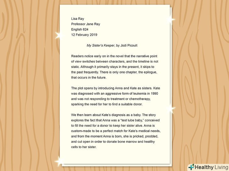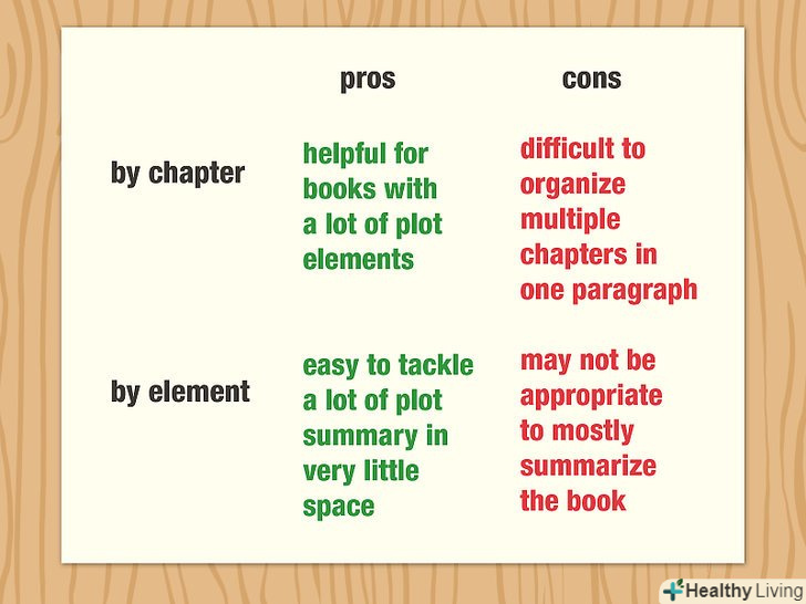 - Організуйте виклад за типом елемента (»тематичний " принцип організації). Якщо ви організуєте виклад по книзі таким чином, у вас може бути абзац для дійових осіб, абзац або два для обговорення сюжету, абзац для розгляду основних ідей, і абзац для узагальнення думки про книгу.
