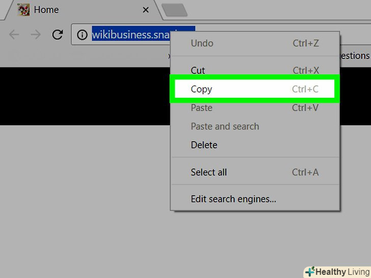 Скопіюйте URL-адресу потрібного сайту. для цього відкрийте сайт у веб-браузері, потім виділіть адресу сайту у верхній частині вікна браузера, клацніть по виділеній адресі правою кнопкою миші (або двома пальцями) і натисніть «Копіювати».- Також можна утримуватиCtrl (Windows) або ⌘ Command (Mac) і натиснути C , щоб скопіювати виділену адресу.