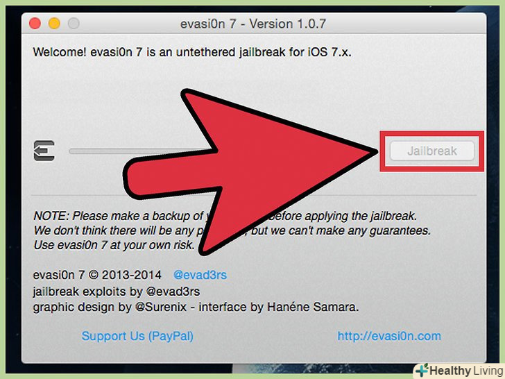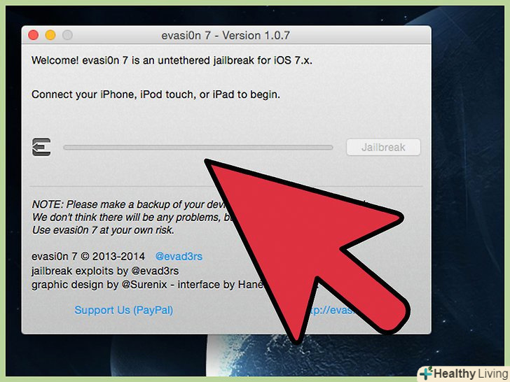 - Зламуйте iOS пристрій лише на свій страх і ризик і пам'ятайте, що компанія Apple не несе відповідальності за шкоду, яку процедура злому може заподіяти вашому пристрою або комп'ютера. Apple не схвалює злом своїх пристроїв, тому такі дії призведуть до анулювання гарантії з боку виробника.