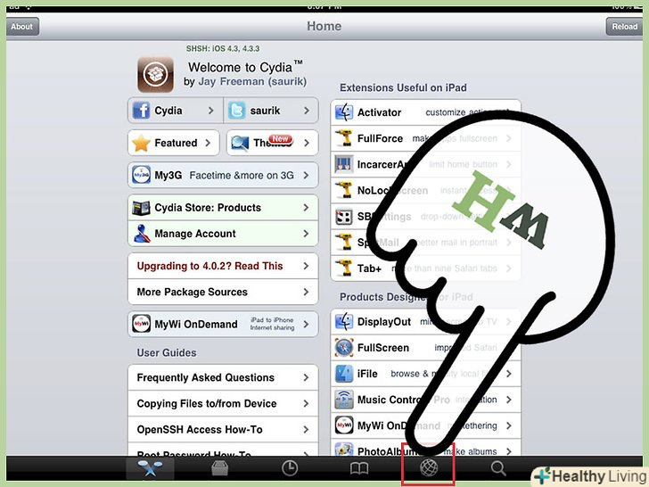 Вимкніть iOS пристрій від комп'ютера, коли програма попросить це зробити.на головному екрані пристрою тепер буде відображатися Cydia. Cydia-це джерело безкоштовних додатків для користувачів зламаних iOS пристроїв.