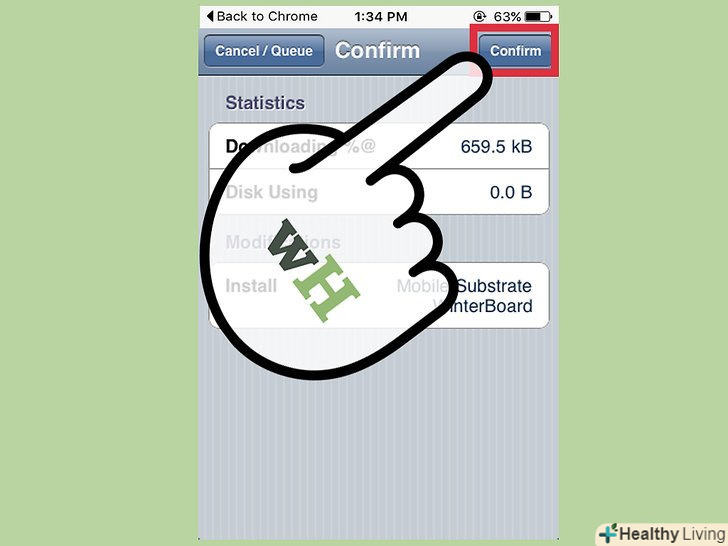 Натисніть Confirm / Підтвердити.джерело приступить до установки на пристрій, після чого з'явиться на робочому столі.[3]